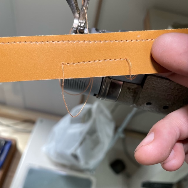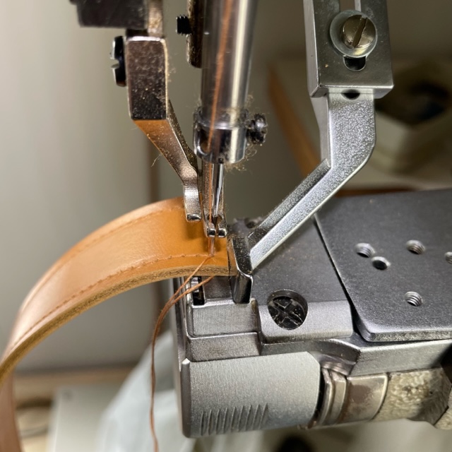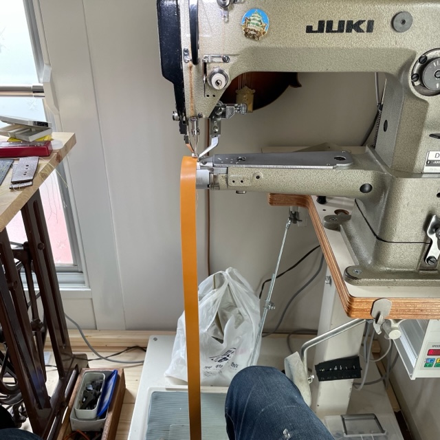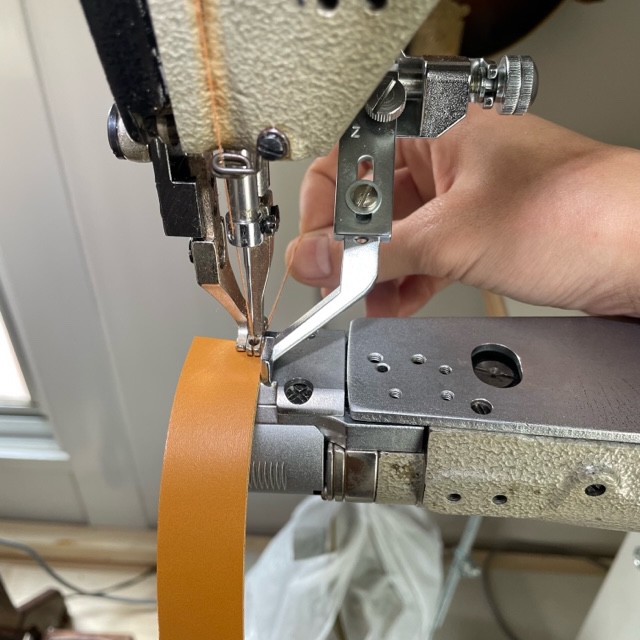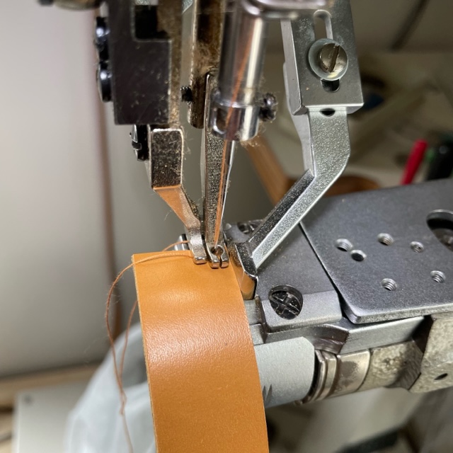 帯状の革をぐるりと縫うだけの簡単なお仕事。