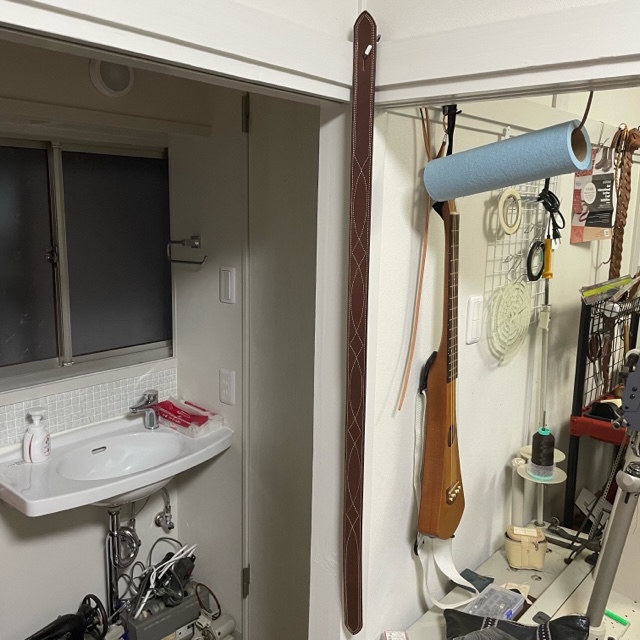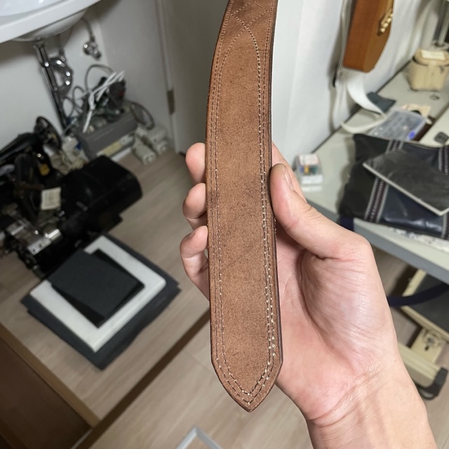 何の変哲もないただのステッチが入った帯状の革。でもこれ失敗作。