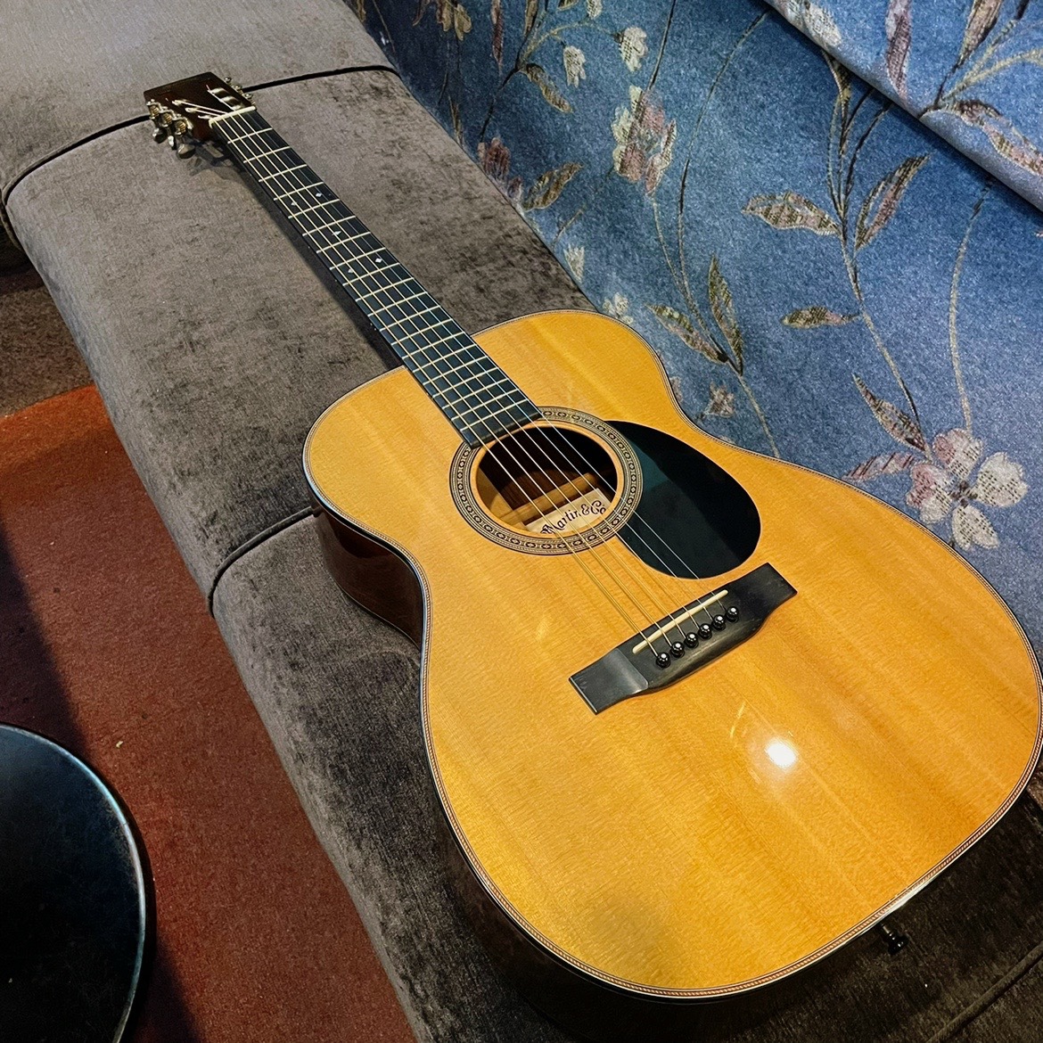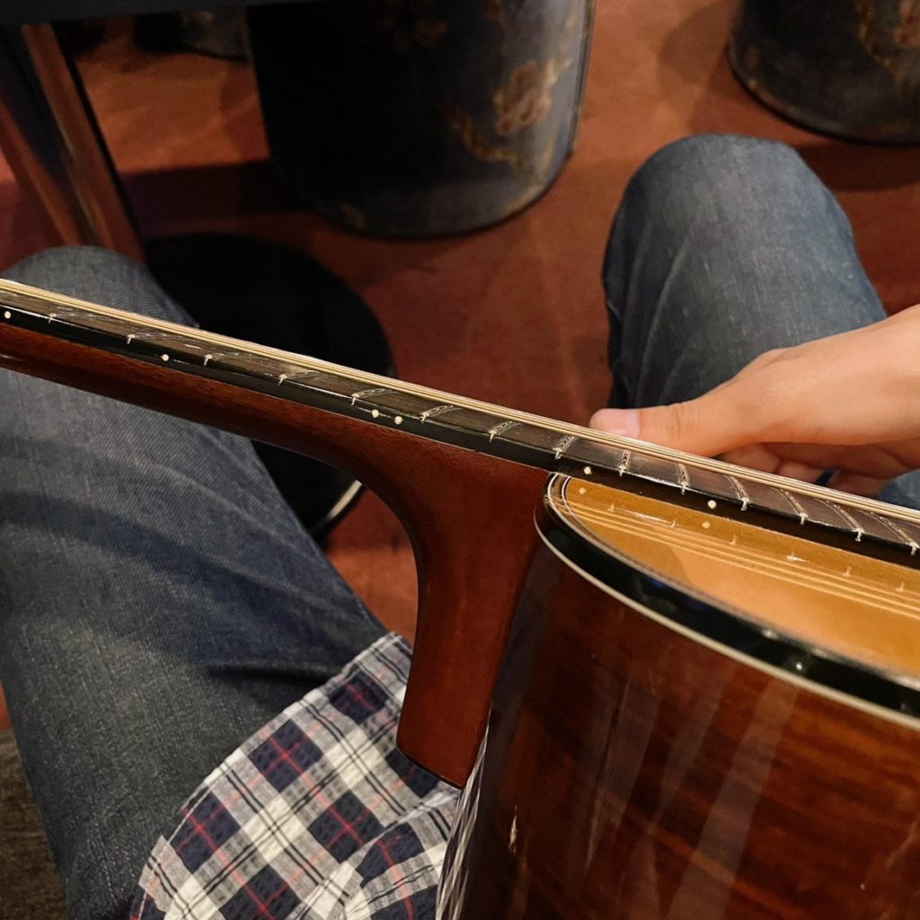 クラシックギターのようなスタイルですが14フレット接合です。そして00サイズなのに胴が深い。