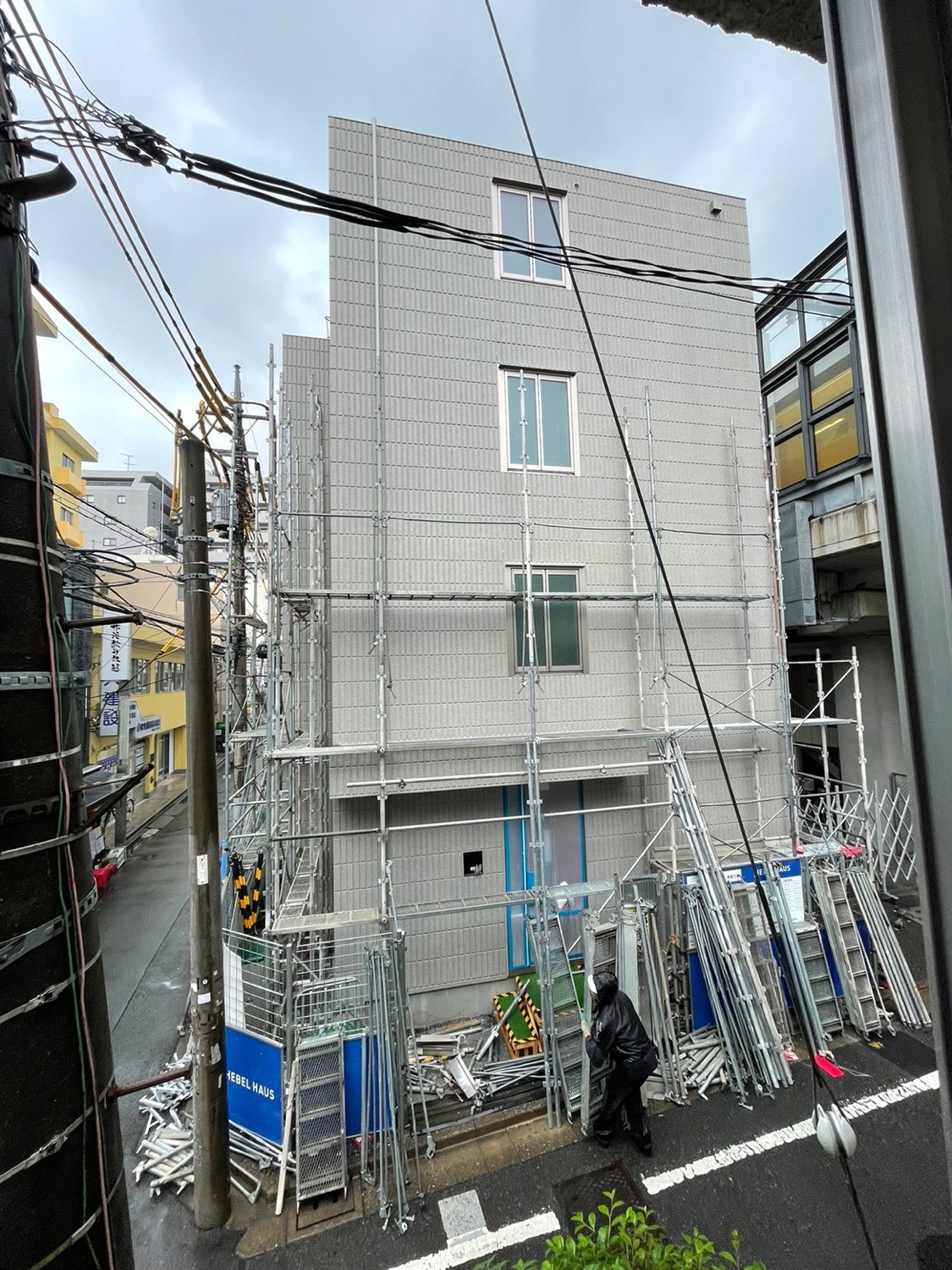 ついに足場をバラしはじめました。もっと音出して良いのに…