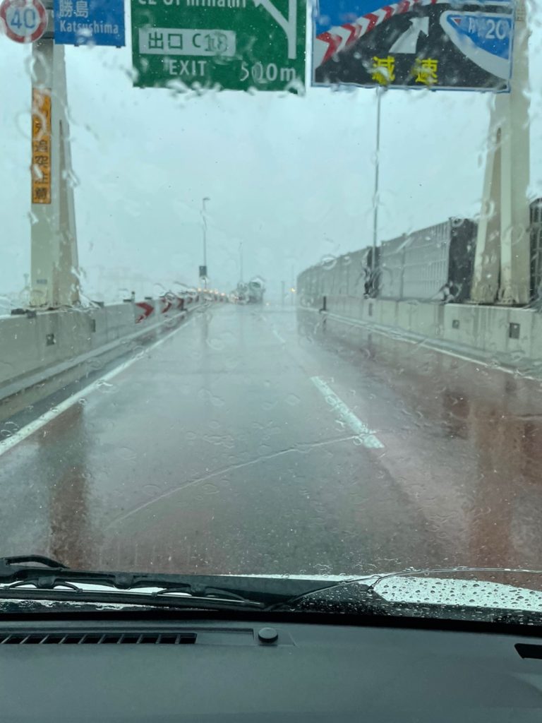 そして次なる難関、機械を運ぶ時の雨率高くない!?よりによって警報級の雨の中、湾岸線をひた走るワタシ、事故りそうです。