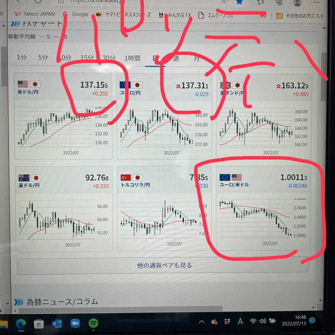 1ドルと1ユーロ、円から見ても同じ価値になっちゃいました。パリティー!