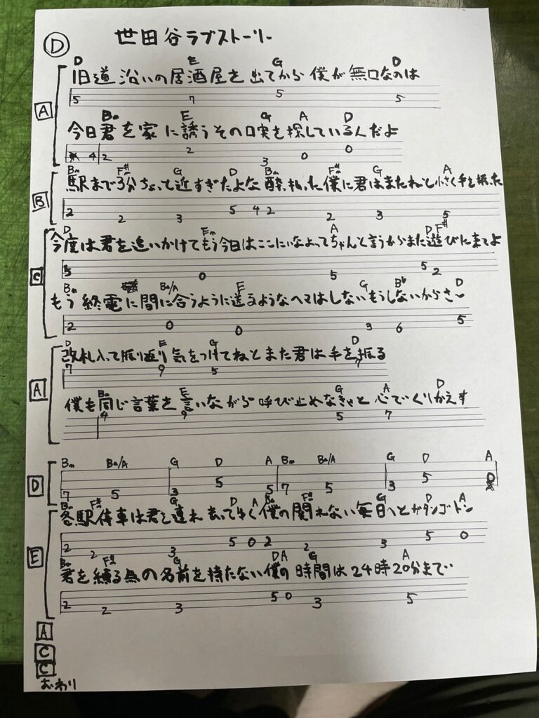 弾き語り歌詞カード的な書き方をしちゃったのが失敗でしたね。次はTABが主体の書き方にしよう。