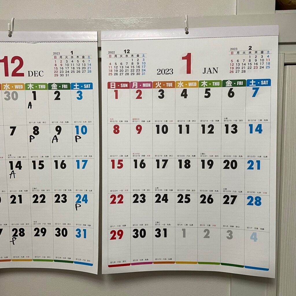 来年のカレンダーをセットして次回に続く。