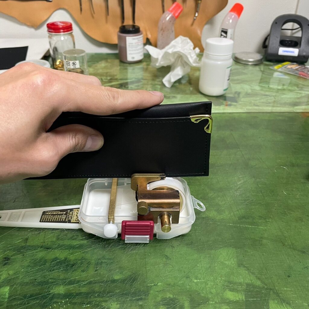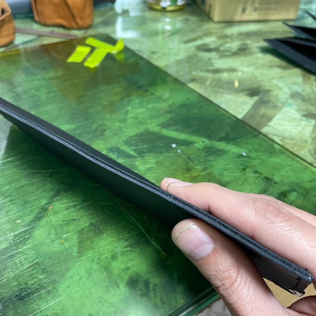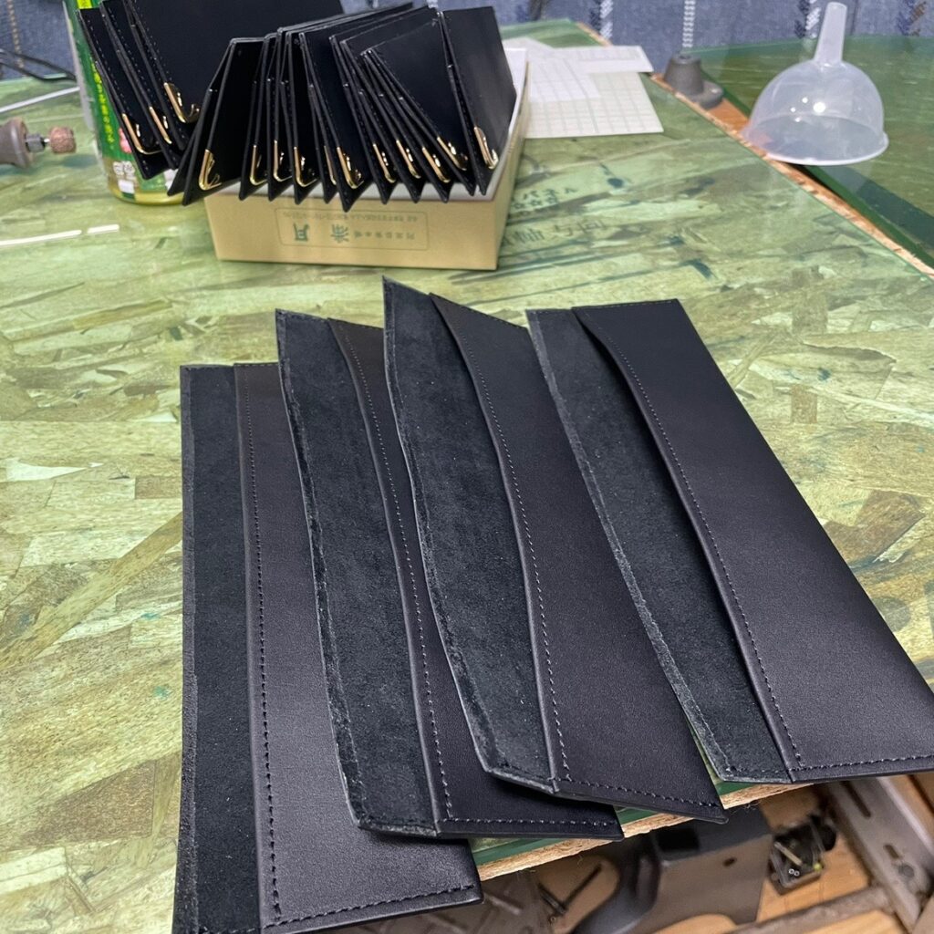 すると当然、断面にフワフワ生地が露出するのであります。このままコバ剤を塗ると後々面倒が増えます。