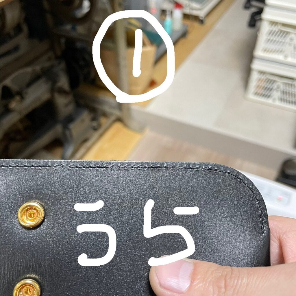 今から2つの縫い目を見てもらいましょう。それぞれの裏表だから合計4枚の画像ね。ちなみに手縫いです。
