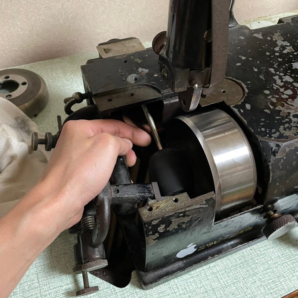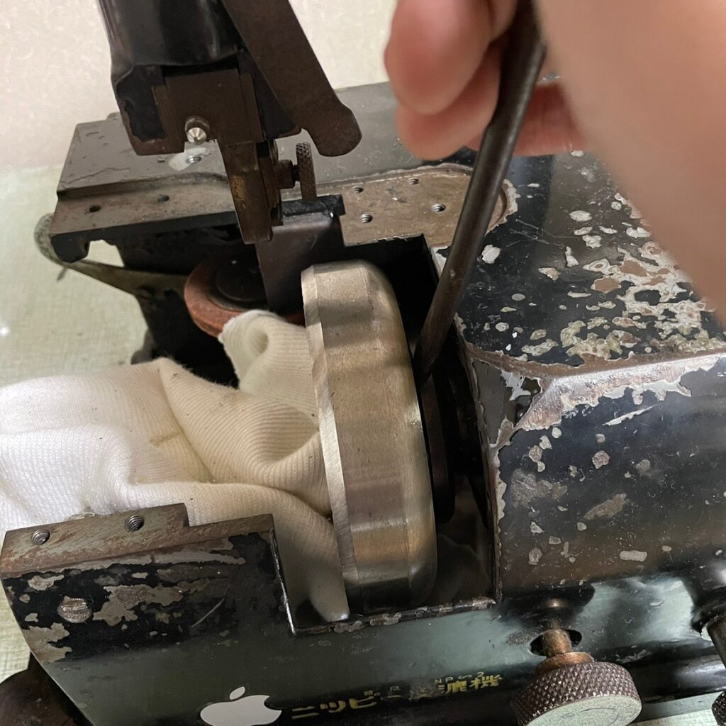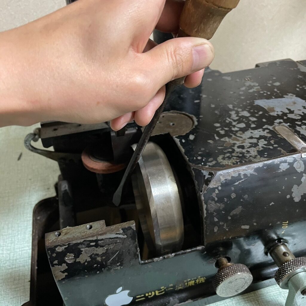 と思いきや、新品の刃を「今までの仕様」にするために研ぎが入ります。