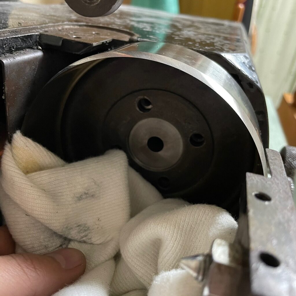 特にココ。完全に平らでピッタリついていないと刃がブレて回るからね。異物があってはいけません。