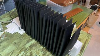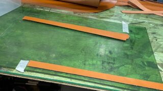 帯状の革の端に両面テープを貼るだけの簡単なお仕事。