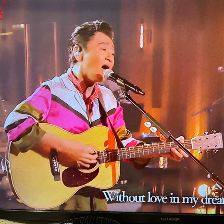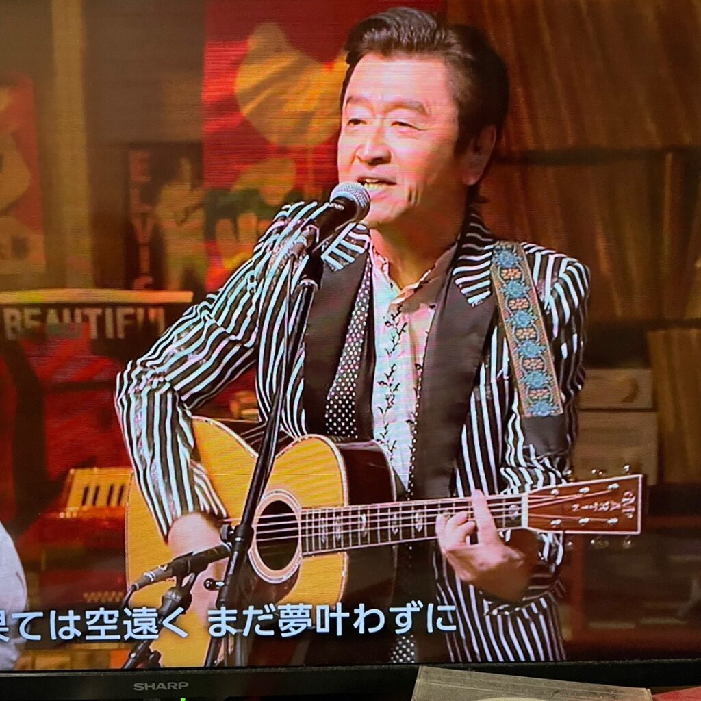 で。昨夜ですよ。同じく某放送協会の番組、ひと回り大きいの分かります?最初のが00-45だと言うならこれは000-28じゃなきゃいけないんですけど、000にしては小さく見えるんですよね。つまりこっちが00だと思うんスよ。つまり最初のがシングルオーという根拠が強くなった訳でありますが、画像だとつい錯覚しちゃいがちなので断言はしません。