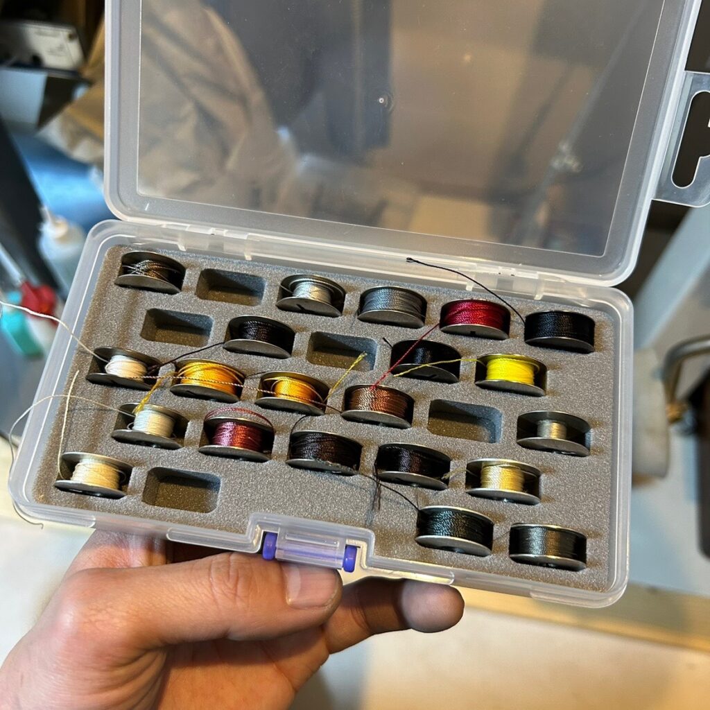 先に上糸やっといて下糸が無かった場合、今セットした上糸をわざわざ外して巻かなきゃいけない。無駄に捨てられた1メートルの糸が泣くわけであります。しかも次はイチから手で掛けなきゃダメだし、その精神的ダメージたるやアレです(語彙力の限界